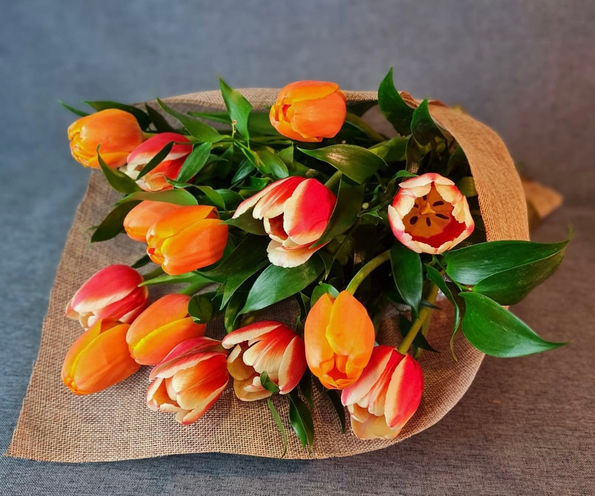 Envuelve la alegría de la primavera con nuestro exquisito ramo de 10 tulipanes, cuidadosamente seleccionados para crear un regalo verdaderamente encantador. Envuelto con arpillera, este ramo no solo es un regalo de flores, sino una expresión elegante y natural de tu afecto. Envía flores a domicilio y sorprende en cualquier ocasión especial con la frescura y la belleza vibrante de los tulipanes.