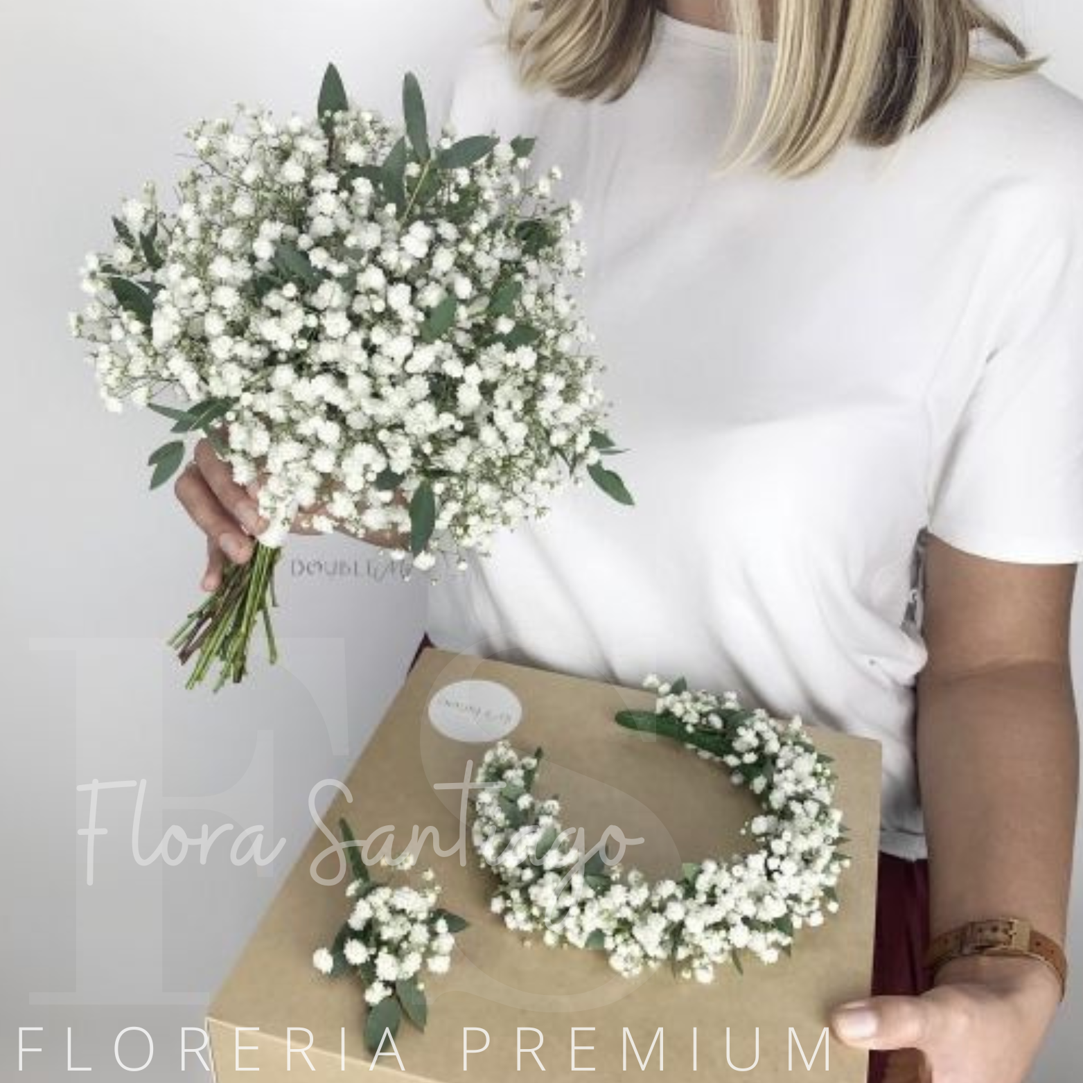 Ramo de Novia, centillo y Boutonniere con mini Flor ilusión